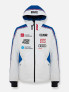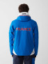 Men’s jacket in smooth and ripstop fabric. Both materials are stretch, waterproof (15,000 mm), breathable (15,000 gr/m2/24h) and 100% recycled. Replica of the garment that the athletes of the French national ski team will wear for the FW23 season, it is characterised by a ribbon that recalls the flag’s colours, underlining the different aspects of the materials with which it was made. The back, in waterproof (10,000 mm) and breathable (10,000 g/m2/24h) stretch softshell, enhances this model’s comfort, promoting movement. The internal padding, made of recycled wadded padding, provides the right degree of warmth. Embroideries and labels personalise the garment. The use of recycled fabric and padding, and the eco-sustainable Teflon EcoElite™ water repellent treatment are part of the Colmar Green Path project, which aims to protect the environment.