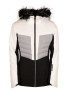 The feminine style Fundango Salina Padded Jacket decorated with removable faux fur is a popular classic of the brand. The front zippered pockets, inner pocket, media holder pocket, mesh ski goggle holder pocket, zippered breast pocket and ski pass holder pocket comfortably fit your valuables, and its elastic, Velcro-adjustable cuffs fit exactly on your wrists, keeping your arms warm without hindering free movement and preventing the sleeves from wrinkling. The snow gripper that can be attached to the ski pants prevents snow from getting under the clothing, even in case of major falls. The development of the high-quality Dripex membrane used for the jacket was inspired and helped by athletes training in extreme weather conditions. In accordance with their expectations, the jacket does not allow cold wind or unwanted moisture to enter, while the outside provides a free path for sweat vapor generated during active movement. The number 15,000 mm means that every square centimeter of the ski jacket must withstand the pressure of a 15,000 millimeter high water column without allowing moisture to pass through. This value is proof of premium category clothing: the jacket remains impermeable to water even in torrential rain. The Regular Fit cut ensures your complete freedom of movement and also enables layered technical clothing. The fixed, drawstring-adjustable hood and the drawstring-adjustable waist protect against the cold wind. The very soft fur lining of the ski jacket keeps you warm even in adverse weather conditions without reducing ventilation: it contributes to the preservation of the heat produced by the body and prevents heat loss, thanks to which the wearer of the jacket can feel comfortable even in extreme cold. With the help of the zippered ventilation openings, you can easily regulate your heat release. The breathability of the ski jacket is 8000 g/m2/24h.