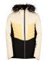 The feminine style Fundango Salina Padded Jacket decorated with removable faux fur is a popular classic of the brand. The front zippered pockets, inner pocket, media holder pocket, mesh ski goggle holder pocket, zippered breast pocket and ski pass holder pocket comfortably fit your valuables, and its elastic, Velcro-adjustable cuffs fit exactly on your wrists, keeping your arms warm without hindering free movement and preventing the sleeves from wrinkling. The snow gripper that can be attached to the ski pants prevents snow from getting under the clothing, even in case of major falls. The development of the high-quality Dripex membrane used for the jacket was inspired and helped by athletes training in extreme weather conditions. In accordance with their expectations, the jacket does not allow cold wind or unwanted moisture to enter, while the outside provides a free path for sweat vapor generated during active movement. The number 15,000 mm means that every square centimeter of the ski jacket must withstand the pressure of a 15,000 millimeter high water column without allowing moisture to pass through. This value is proof of premium category clothing: the jacket remains impermeable to water even in torrential rain. The Regular Fit cut ensures your complete freedom of movement and also enables layered technical clothing. The fixed, drawstring-adjustable hood and the drawstring-adjustable waist protect against the cold wind. The very soft fur lining of the ski jacket keeps you warm even in adverse weather conditions without reducing ventilation: it contributes to the preservation of the heat produced by the body and prevents heat loss, thanks to which the wearer of the jacket can feel comfortable even in extreme cold. With the help of the zippered ventilation openings, you can easily regulate your heat release. The breathability of the ski jacket is 8000 g/m2/24h.