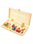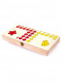 Класическа игра в забавен дизайн – тук играчите играят с фигурки на животни! Друга специална функция: върху зарчето има числа, а не точки! Частите и матрицата се съхраняват безопасно в дървена кутия на панти.