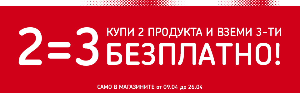 - Офертата е валидна за периода от 09.04 до 26.04.2026 г. и не може да се комбинира с други отстъпки. В