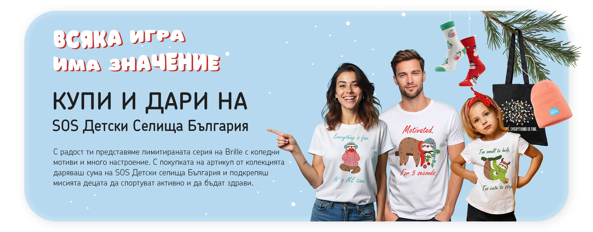 Подарете топлина и много настроение, с покупката на чорапи от нашата лимитирана серия „Всяка игра има значение“ дарявате 1 лев на SOS Детски селища България.